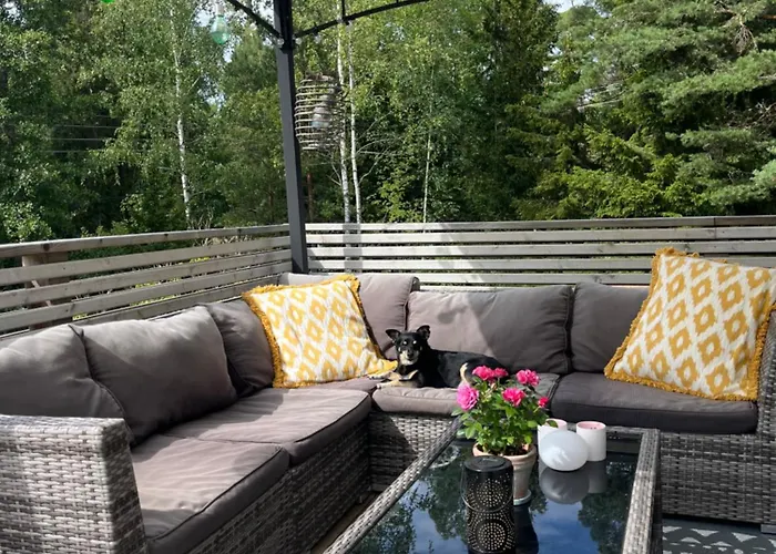 Une cafetière/théière sont disponibles dans une cuisine équipée qui comprend également un micro-ondes et un réfrigérateur. Située à quelques minutes de route de cette villa, l'arrêt de bus Skalsmara offre des options de transport dans le voisinage.